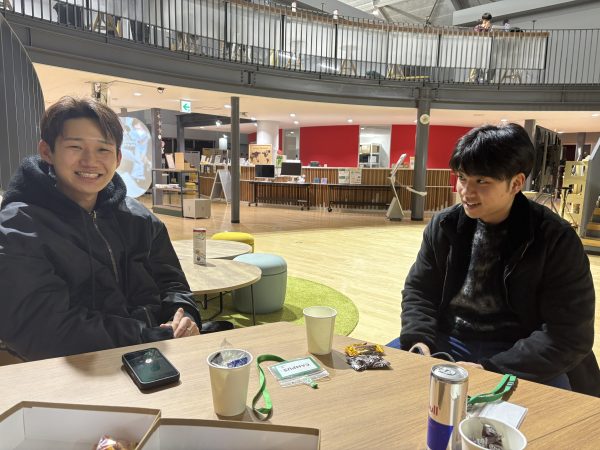 同じ専攻の先輩と後輩は、就活情報交換にも熱が入っていました。