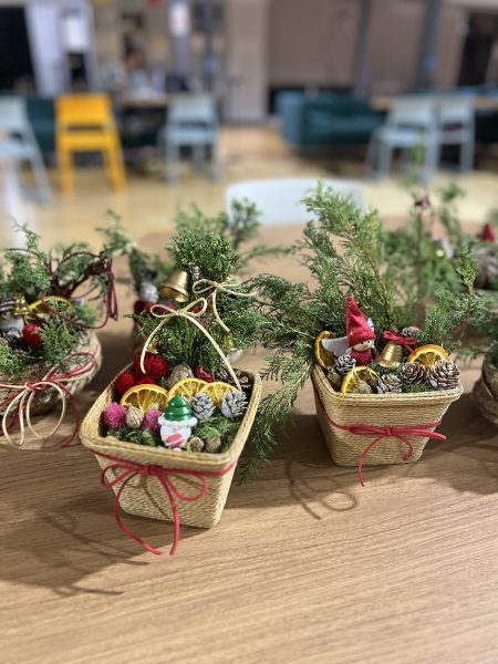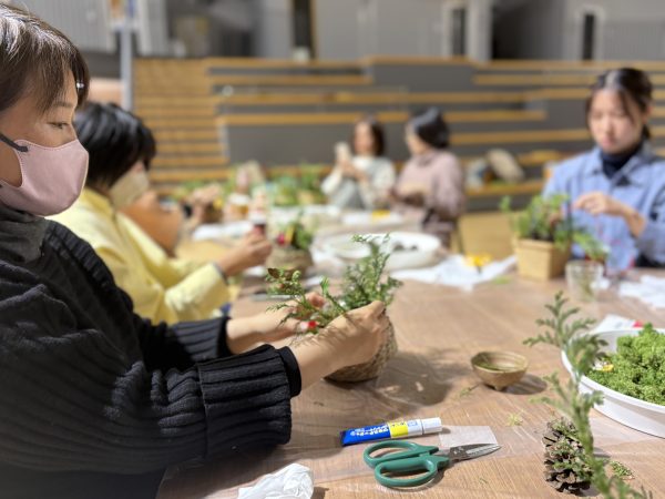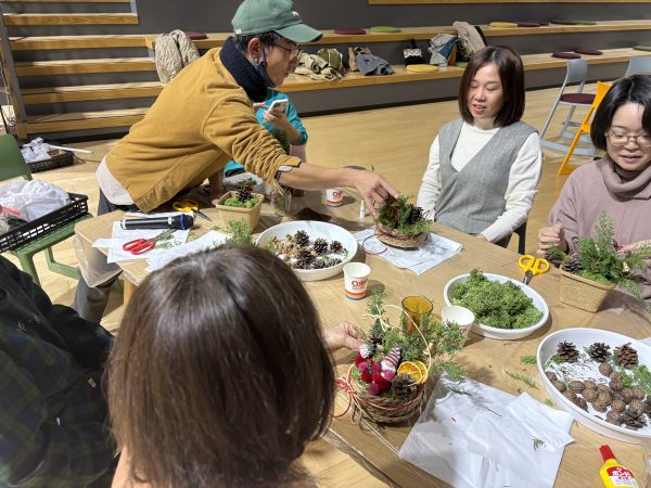 今回も、戸畑の路地裏のお花屋さん、「柚」の松尾先生をお招きしての「クリスマスアレンジメント」制作🎄