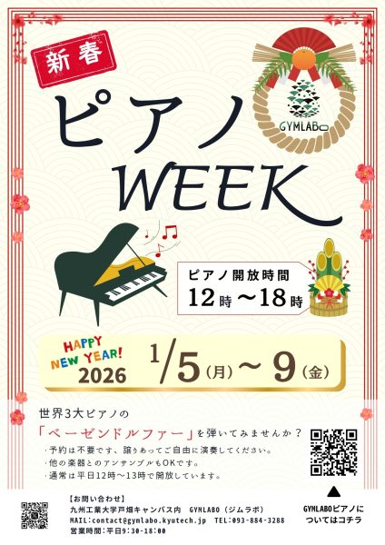 【誰でも参加可!】1月5日(月) ~9日(金) ピアノ WEEK