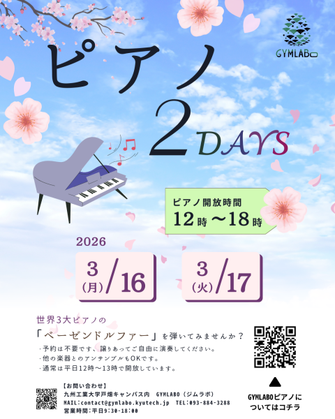 【誰でも参加可!】3月16日(月)17日(火) ピアノdays