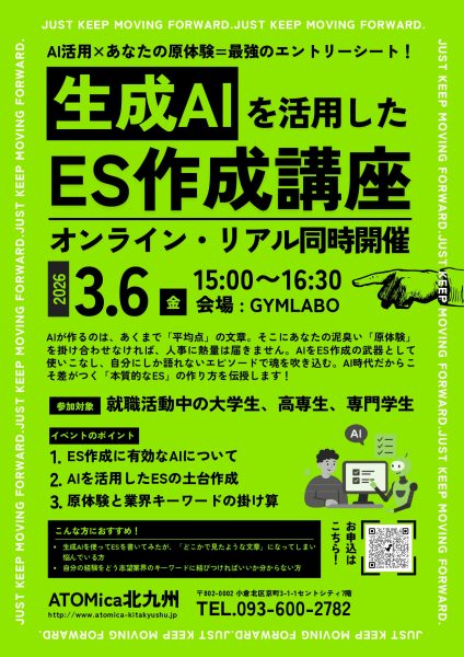 3月6日(金) 生成AIを活用したES作成講座