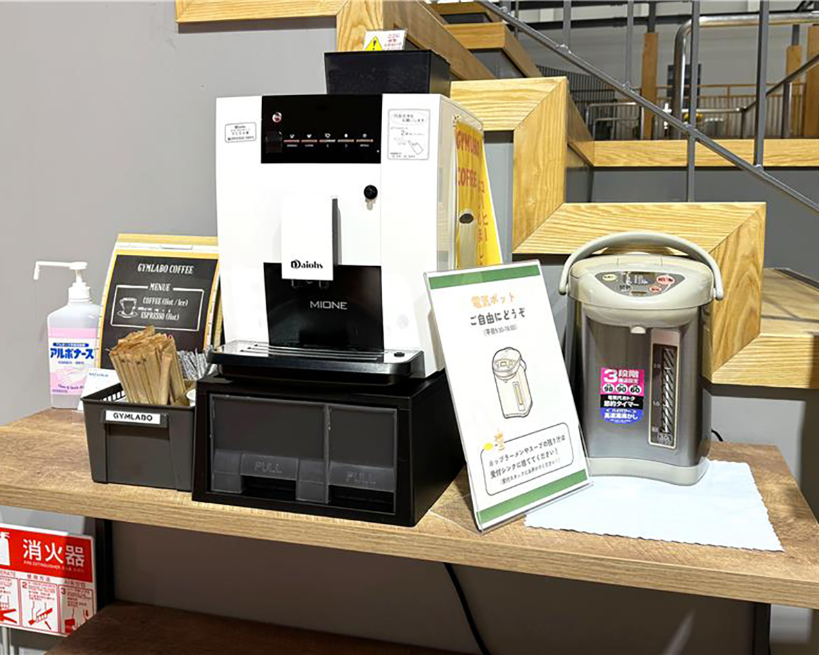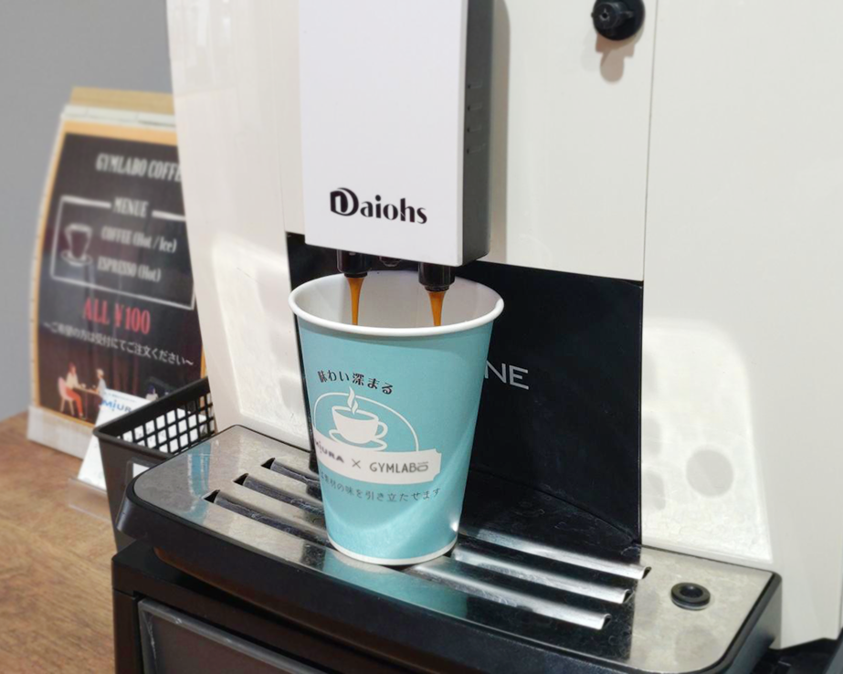 GYMLABOコーヒーは2022年9月から販売を開始しました。 一杯100円での提供で、学生や企業の方など多くの利用者に親しまれています。